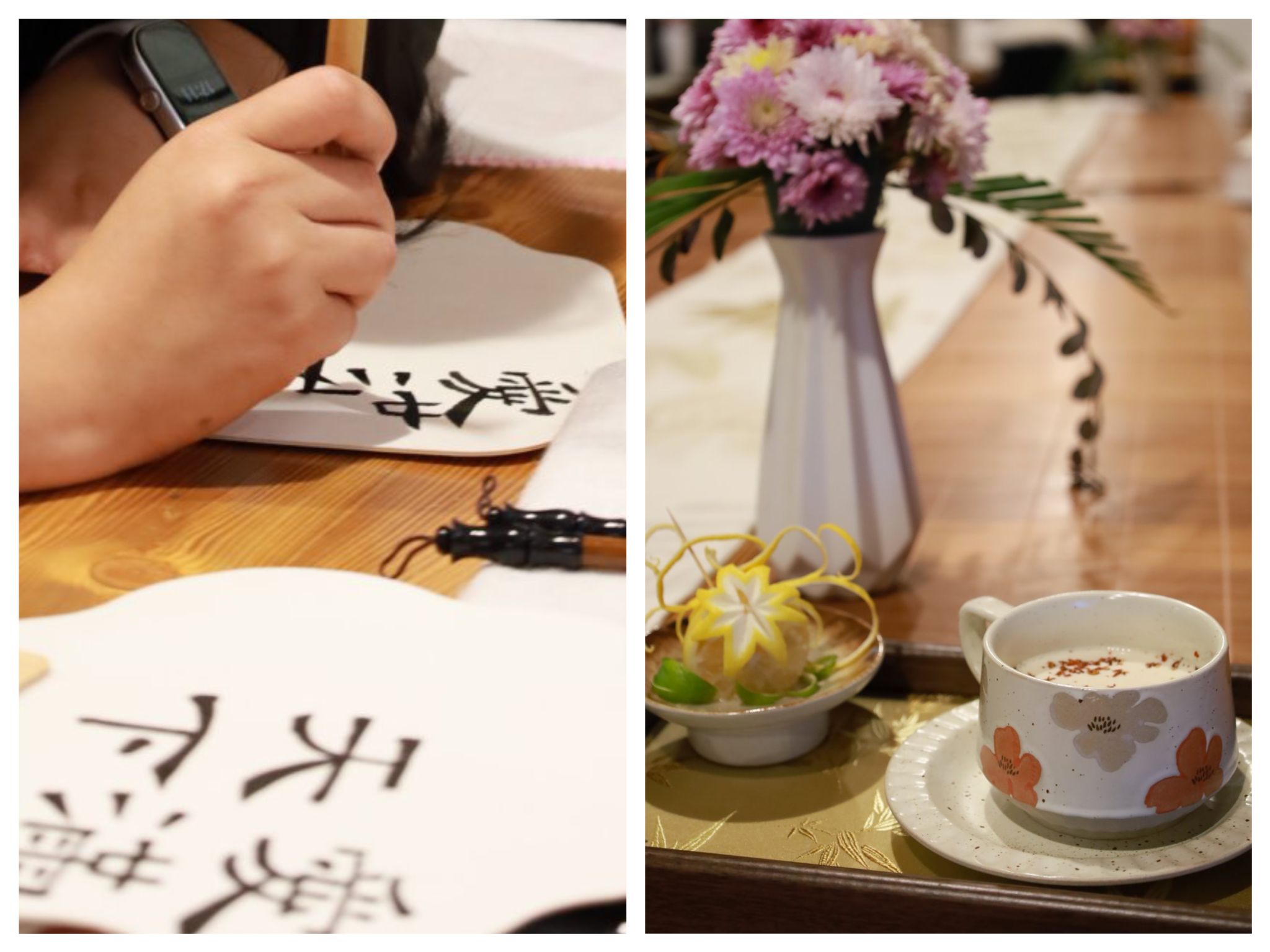 活动伊始,宰学明院长致欢迎辞,向与会嘉宾介绍了我校园艺园林学院的学科特色与建设成果,展现了学院在推动茶学教育与科研方面的积极探索。在年度总结与展望环节,各委员单位依次汇报了在茶业学术交流与科普宣传等方面的工作成效。冯晴主委围绕分会未来发展方向提出了具体规划,孙桂菊理事长与唐纯秘书长对分会工作给予充分肯定,并就未来发展方向提出建设性意见。钱存良总经理对我校行知茶园的建设及分会成果表示赞赏,同时围绕茶产业融合与创新提出了宝贵建议。在沉浸式茶文化体验环节,嘉宾们围炉品茗,欣赏行知茶社同学现场冲泡自制的桂花红茶,于氤氲茶香中探讨行业趋势。茶社研发的新品“桂花烤奶”获得一致好评,展现了传统茶饮与现代创新的有机结合。手书团扇互动环节,则将“行知”文化意蕴与茶道美学相融合,为活动增添了雅趣与深度。