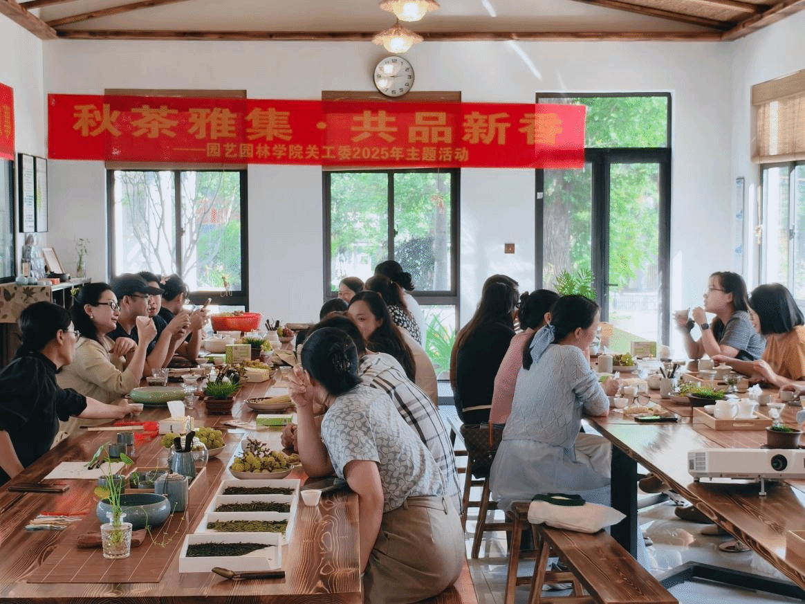 2025年9月23日下午,园艺园林学院关工委在行知茶园举办“秋茶雅集•共品新香”主题活动,本次茶会活动由董瑞霞副教授主持,相关院领导、关工委成员、部分专业教师和学生参加活动。
