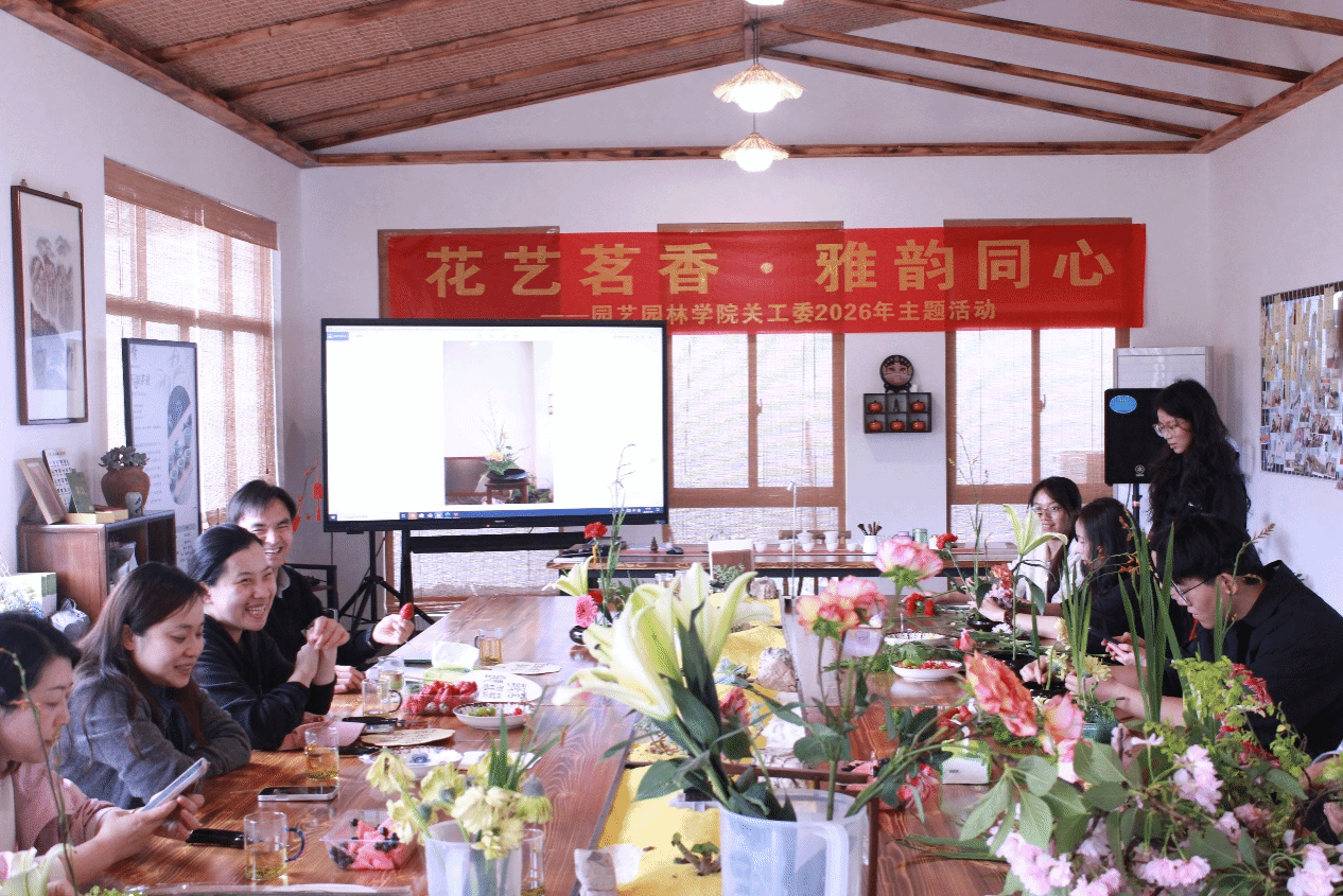 4月15日下午,园艺园林学院关工委在行知茶园举办“花艺茗香 雅韵同心”主题活动。本次活动邀请童丽丽老师莅临指导,关工委老同志代表、部分专业教师与学生代表共同参与,以茶为媒、以花为介,在专业实践中厚植文化自信,于师生共融中涵育时代新人。